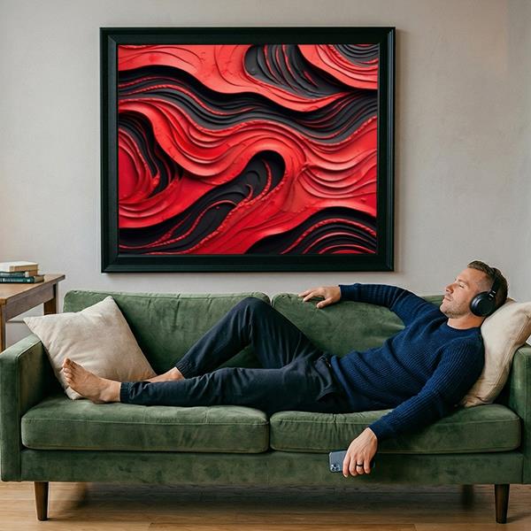 Abstrakt Rød og Sort Vævning