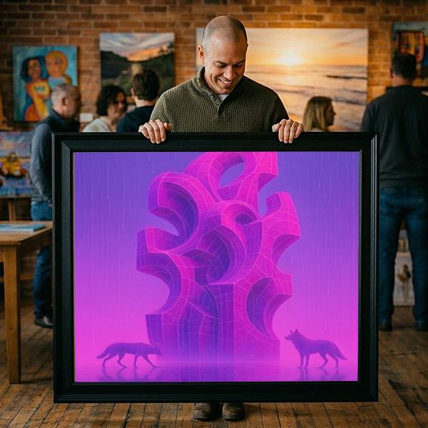 Abstrakt Skulptur med Dyr i Neonfarver
