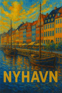 Farverig udsigt over Nyhavn med både
