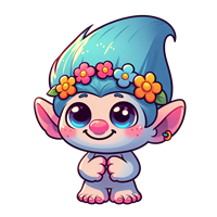 Farverig trold med blomsterkrans