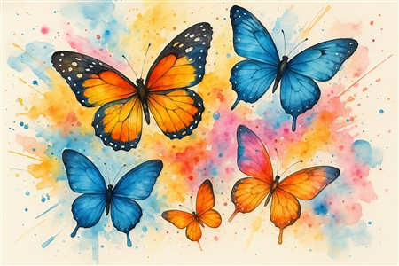 Farverige Sommerfugle i Akvarel