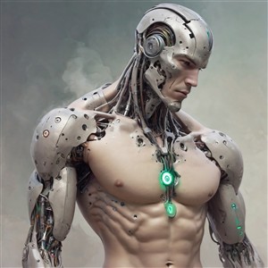 Futuristisk cyborg med mekaniske detaljer
