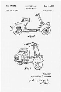 Patenttegning af scooter design fra 1969