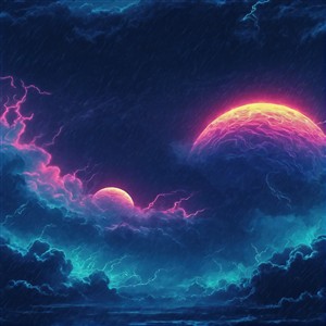 Galaktisk Himmel med Lyn og Planeter