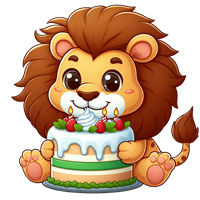 Sød løve med fødselsdagskage