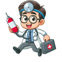 Glad læge med medicinsk udstyr