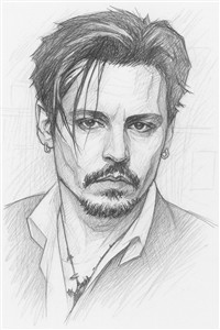 Portræt i blyant af mand med karakteristisk stil