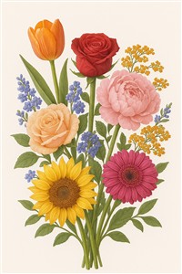 Farverig Buket med Blomster