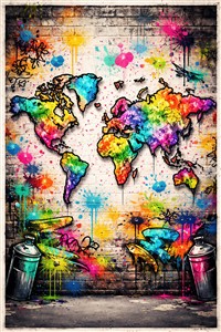 Farverig Verdenskort i Graffiti Stil