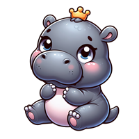 Sød lille flodhest med krone
