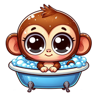 Sødt abe i badekar med sæbebobler
