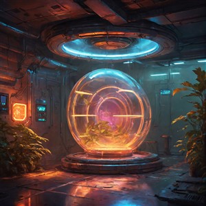 Futuristisk plantekapsel i et laboratoriemiljø