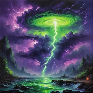 Stormfuld Himmel med Lyn og Grønne Skyer