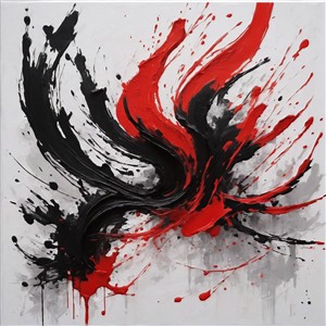 Dynamisk Abstrakt Kunst med Røde og Sorte Farver
