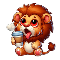 Sød lille løve med kaffe