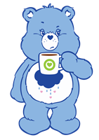 Sødt blå bjørnekarakter med en kop