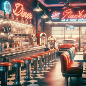 Retro Diner med Neonskilt og Kromdetaljer