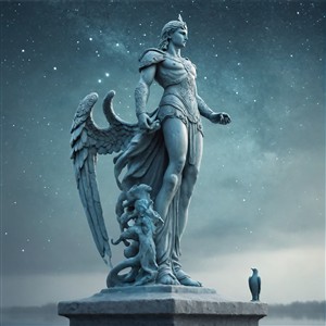 Storslået Statue med Vinger og Mytologiske Elementer