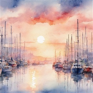 Solnedgang over havnen