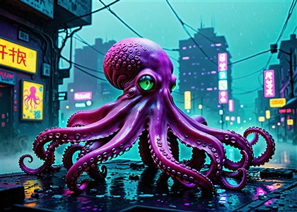 Futuristisk blæksprutte i neonverden