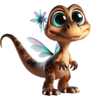 Sødt dinosaur med vinger og blomst