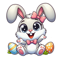 Sød påskehare med farverige æg