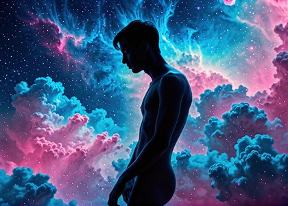 Menneskelig Silhuet i Kosmisk Landskab