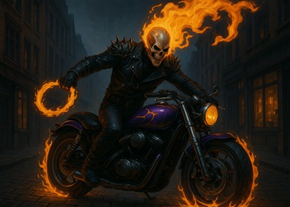Flammende Rytter på Motorcykel