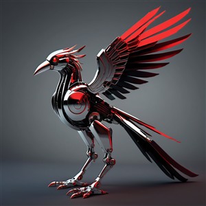 Futuristisk Robotfugl i Rødt og Sort