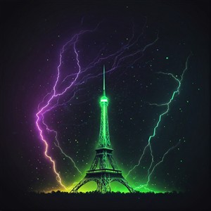 Eiffeltårnet i Neonlys og Lyn