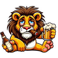 Afslappet løve med øl og cigar