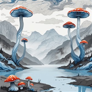 Magiske svampe i bjerglandskab