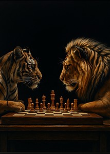 Schakspil mellem en tiger og en løve