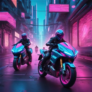 Futuristiske motorcykler i neonlys