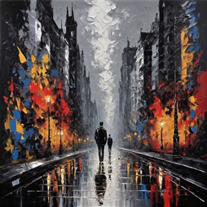 Mørk Gade med Farverige Lys