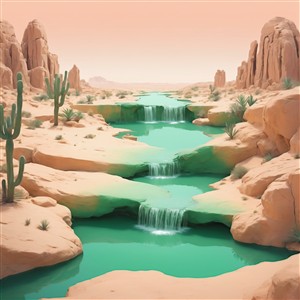 Frodig Ørkenlandskab med Vandfald