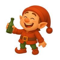 Glad Nisse med Grøn Flaske