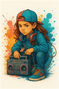 Ung pige med boombox i farverig baggrund