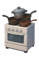 Køkken med gryder på komfur