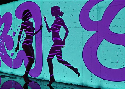 Farverig Silhuet af Dansende Figurer