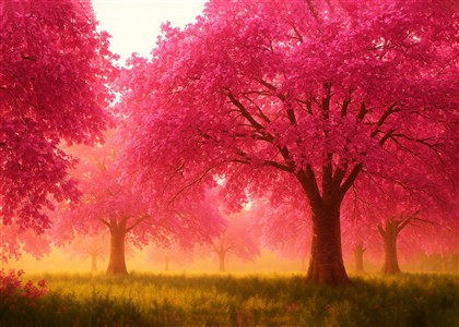 Drømmende Kirsebærtræer i Lyserød Lys