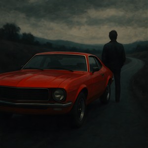 En ensom rejse med en rød bil