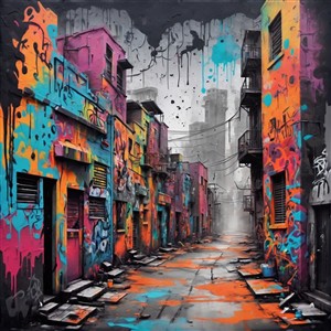 Farverig Gadekunst i En Urban Gade