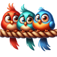 Farverige fugle på en snor