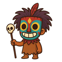 Farverig Maskefigur med Skeletstav