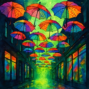 Farverige Paraplyer i Gaden
