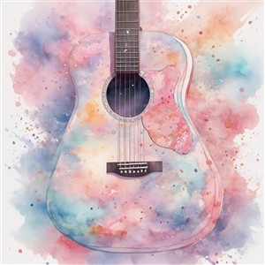 Farverig akustisk guitar i akvarel