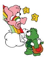 Farverige bjørne på en regnbue