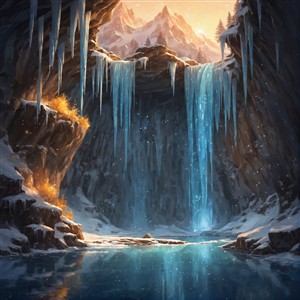 Frostfyldt vandfald i en hulrum