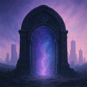 Mystisk Portal i En Futuristisk By